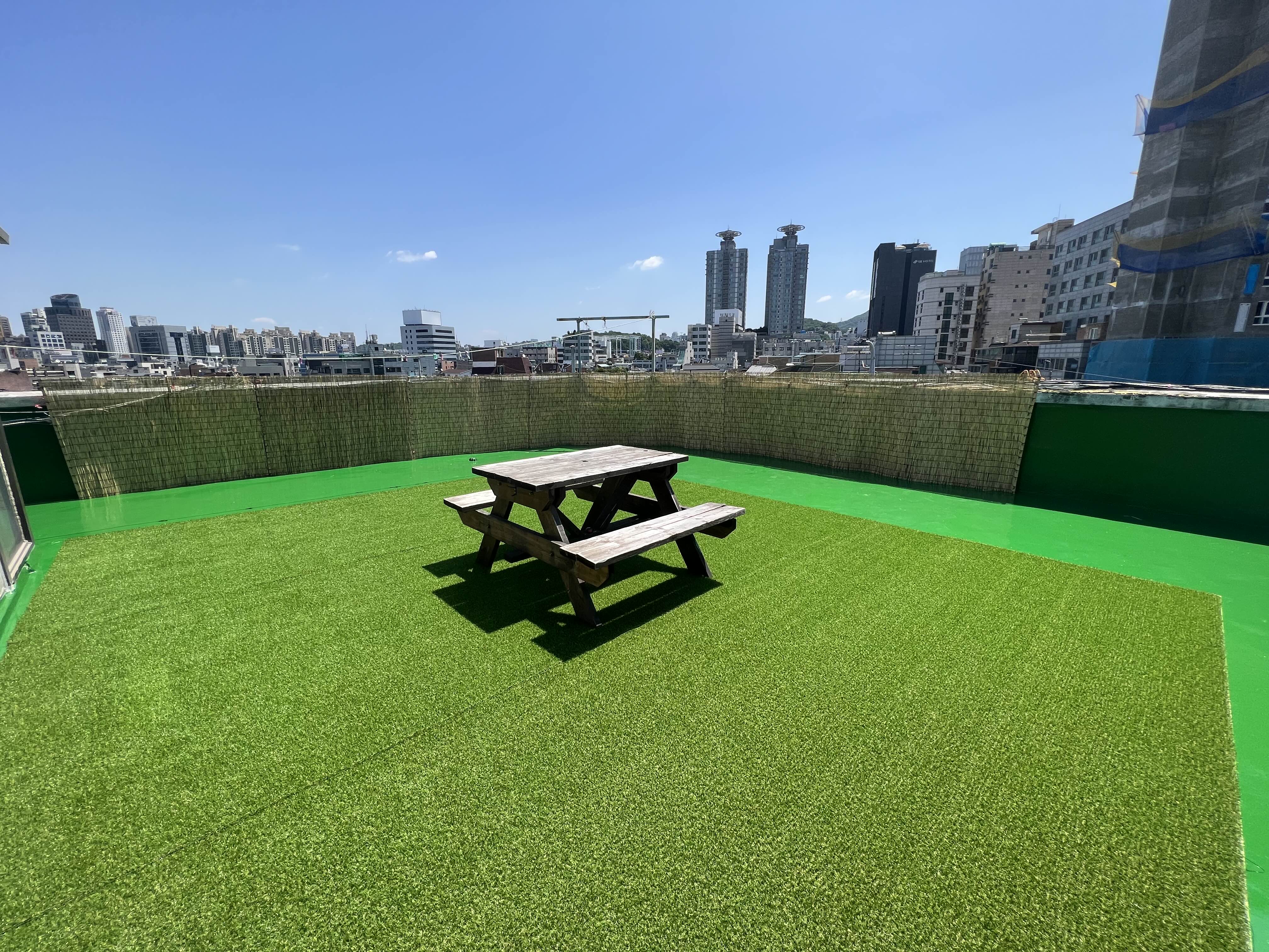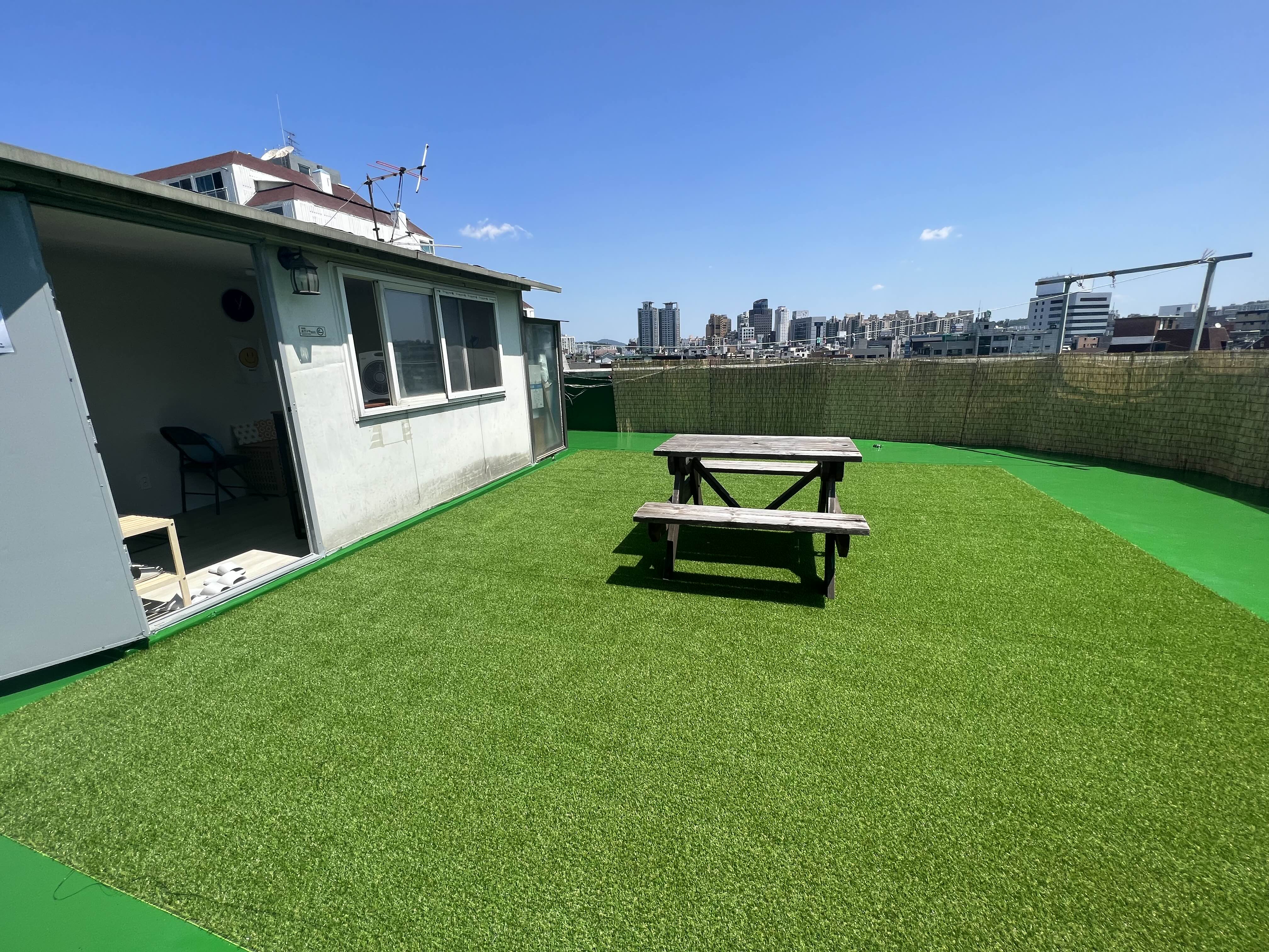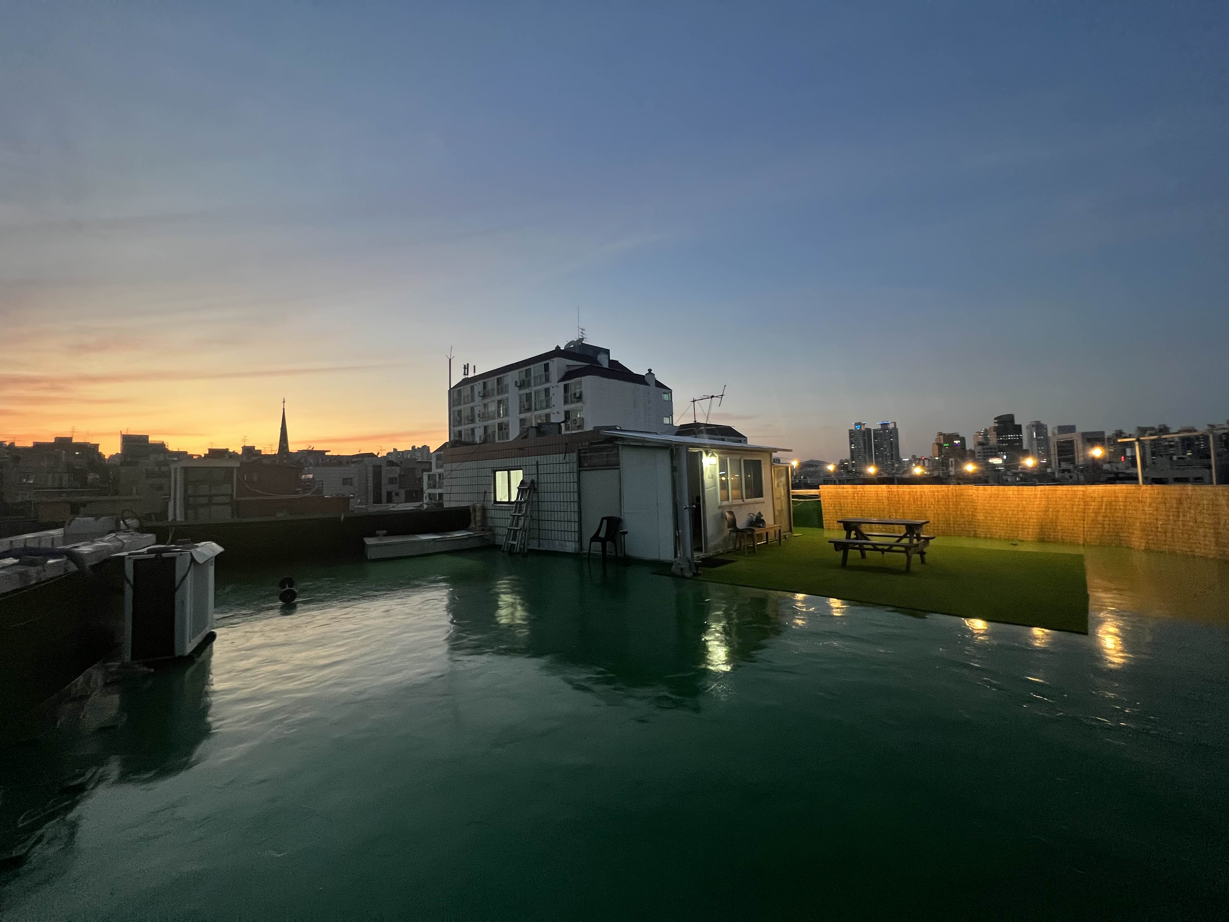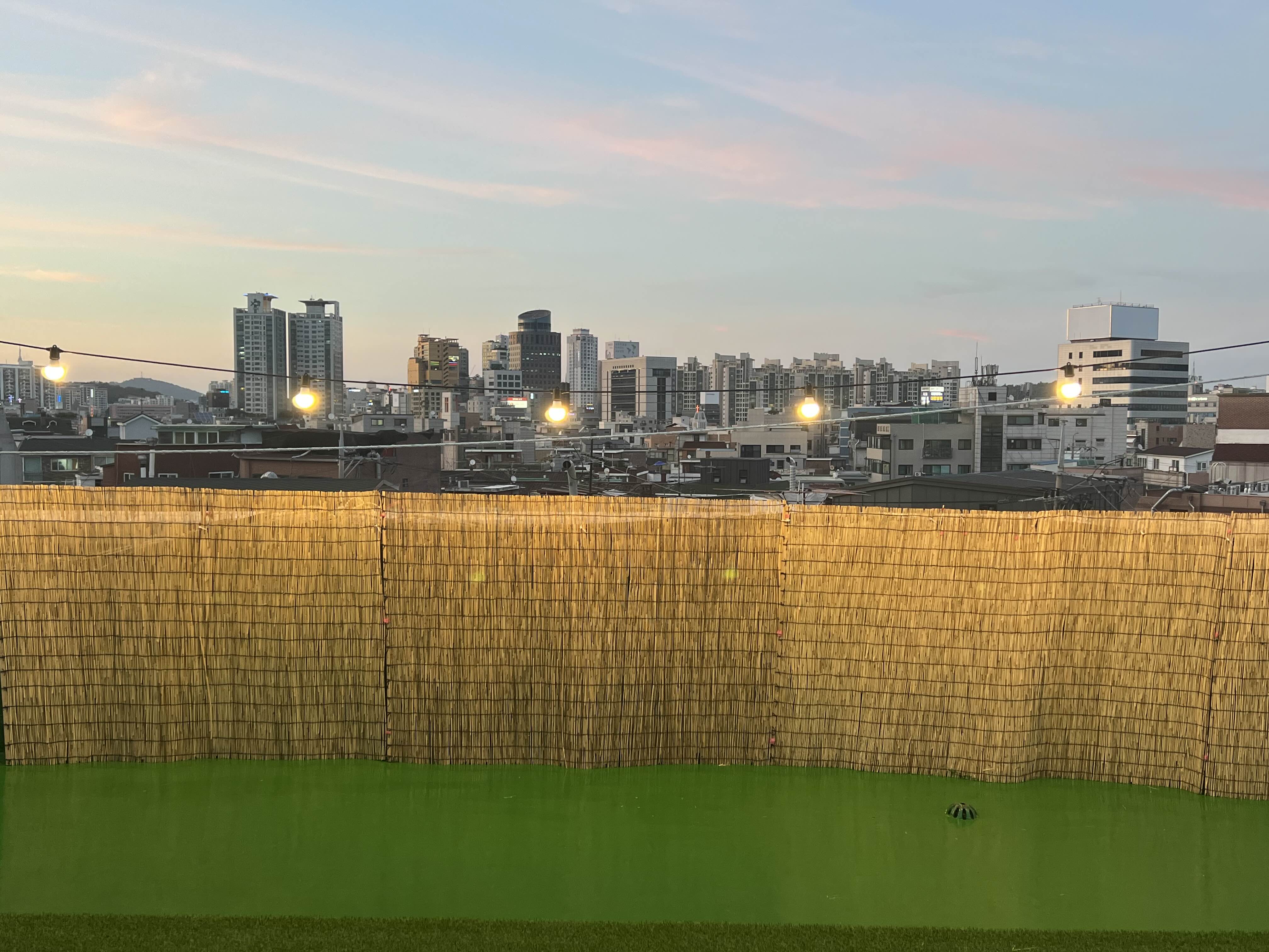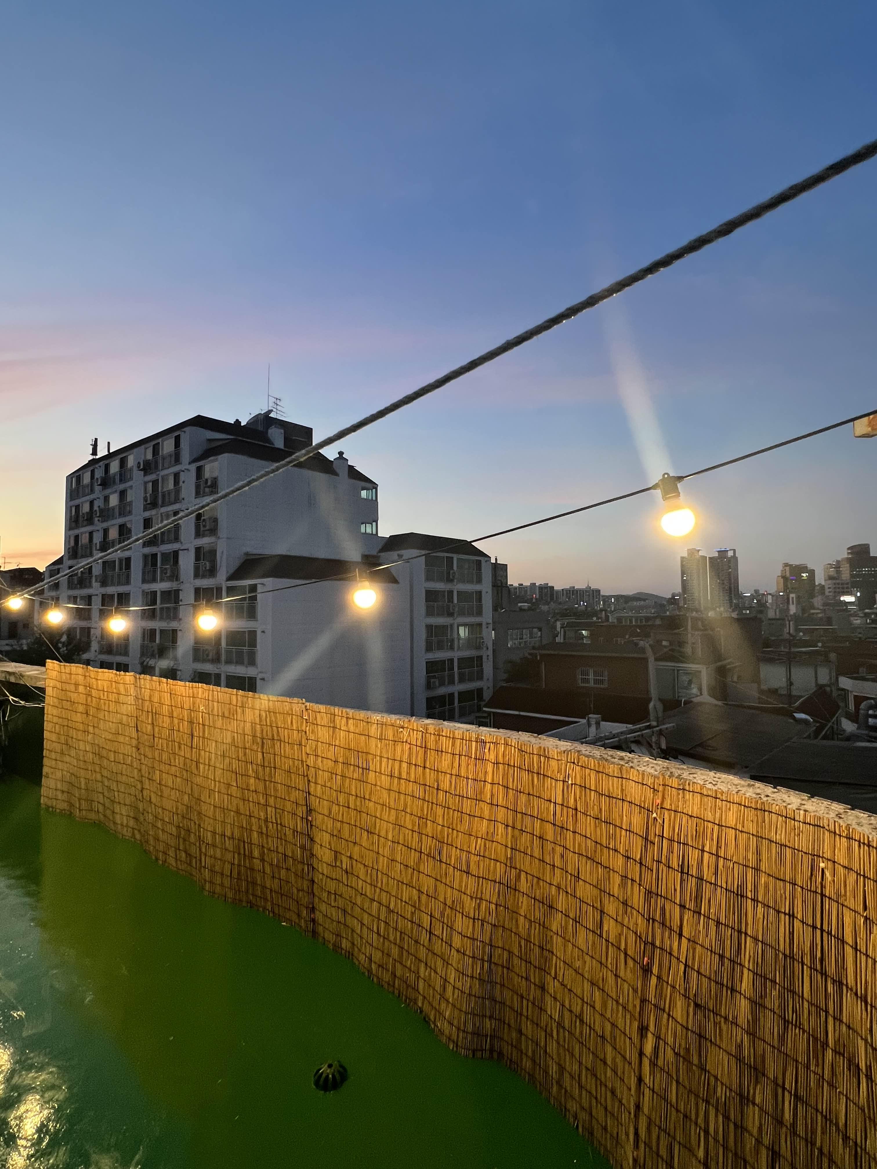 (아직 방들이 여유있습니다만, 총 두 달안에 만실을 채워보는 것이 목표입니다) 내부 공간은 진즉 인테리어를 마쳤는데, 막상 제 로망이었던 곳인 옥상 공간은 방수가 안되어 있던 문제로 진행하지 못하고 있었습니다. 다만 건물주와 잘 이야기 되어서 옥상방수를 진행했고, 지난 주말 드디어 인조잔디와 발설치, 조명 설치 작업을 완료했습니다. 어서 만실기념 파티건, 칵테일 클라스건 진행하고 싶네요 :)