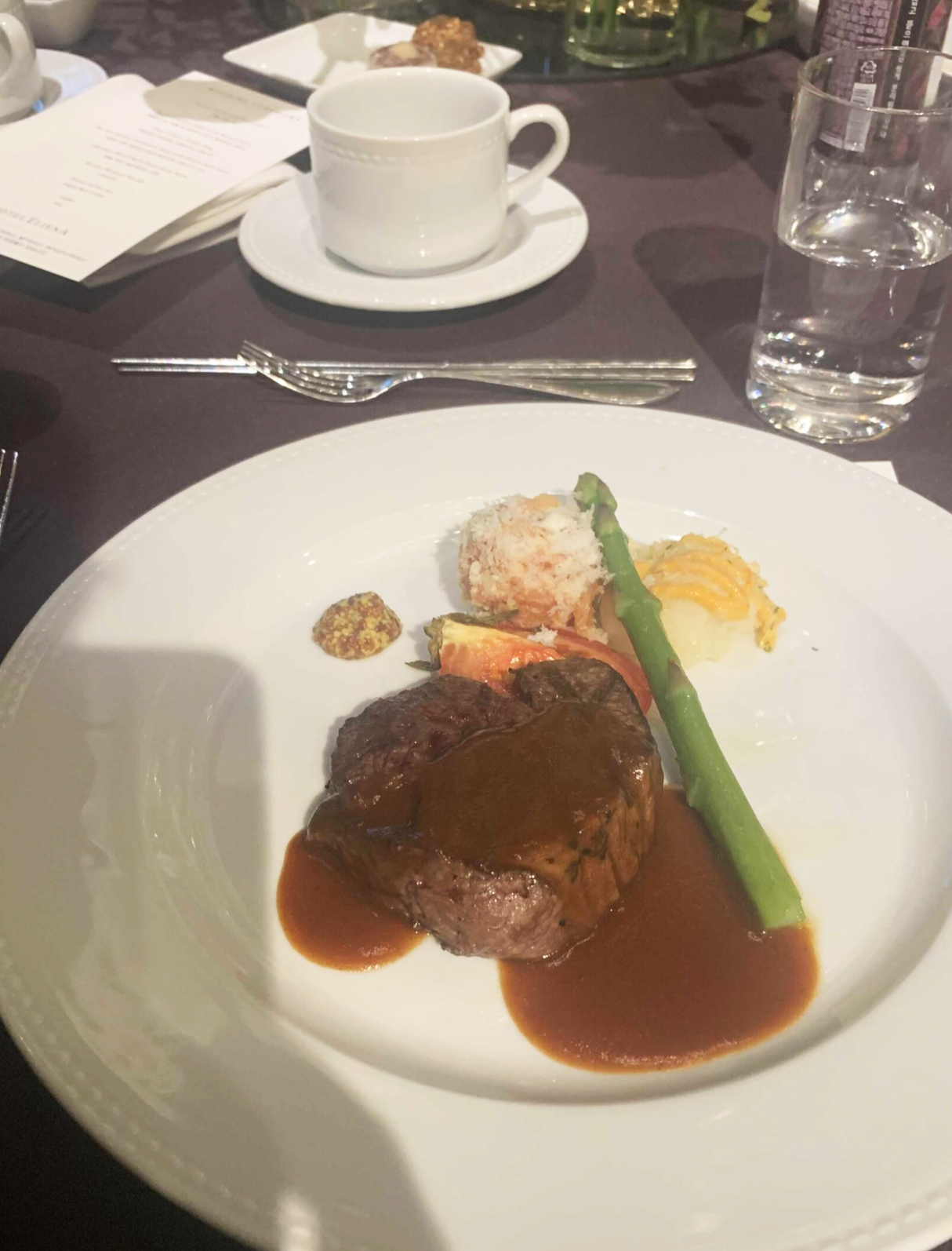 메뉴 보시겠습니다. 결혼식장 식사 코스는 비슷한 것 같습니다. (스테이크, 잔치국수 등) 다만 여기는 빵 대신에 전통 모듬떡이 있네요...! 전 빵을 더 좋아하지만 어르신들은 떡을 더 좋아하시지 않을까 싶습니다.