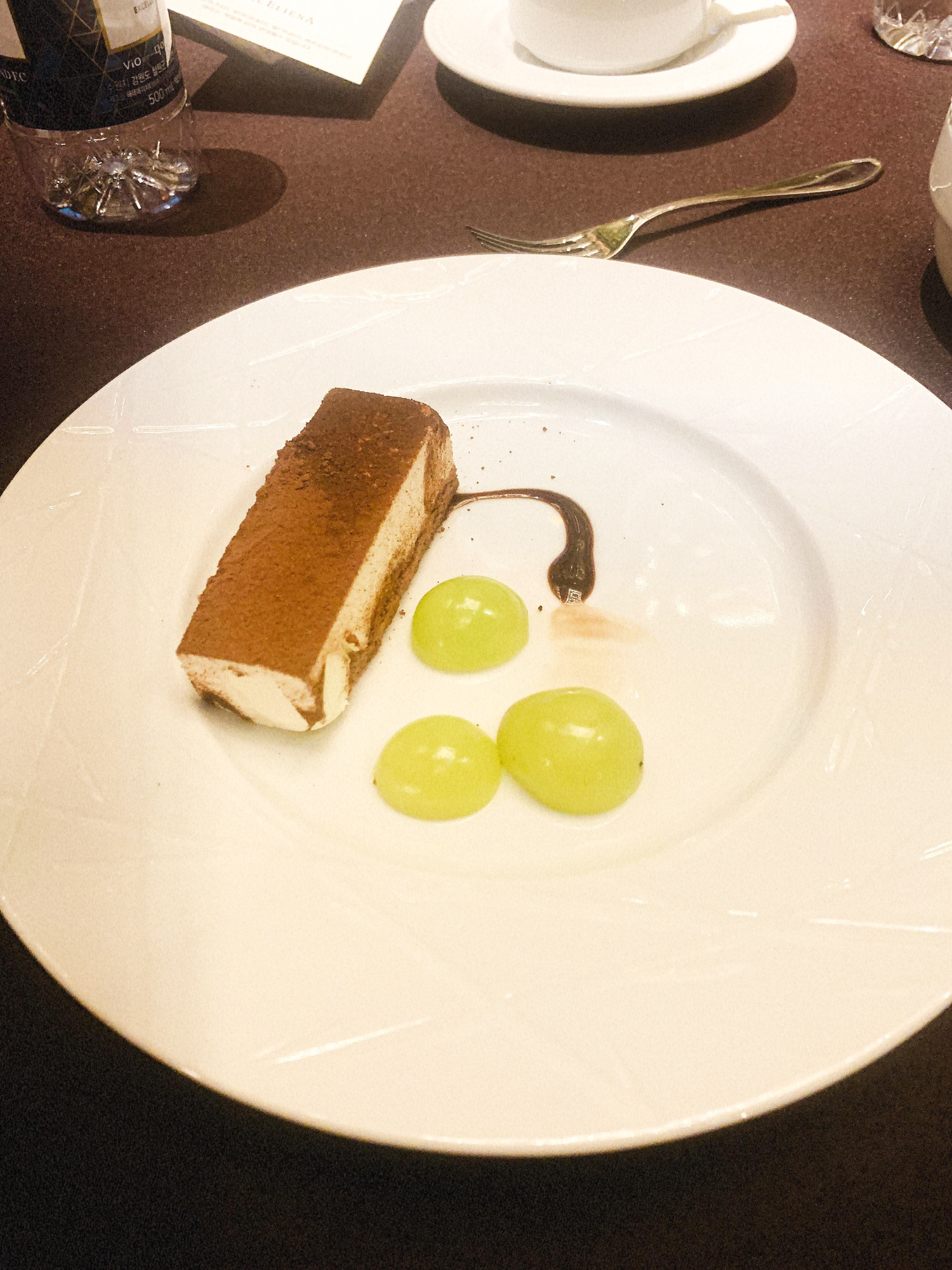 티라미수와 샤인머스켓입니다. 예식에 적당한 음식 같아요 고급집니다..