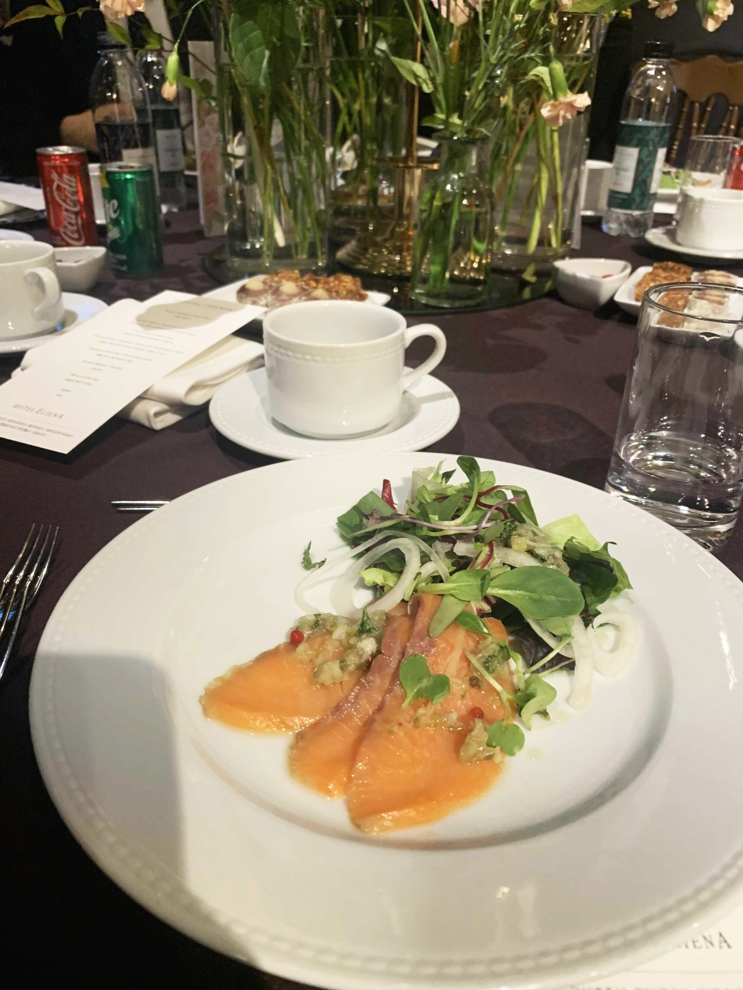 연어 샐러드입니다. 특제소스가 맛있습니다. 올리브 오일 같은게 포함된 것 같더라고요