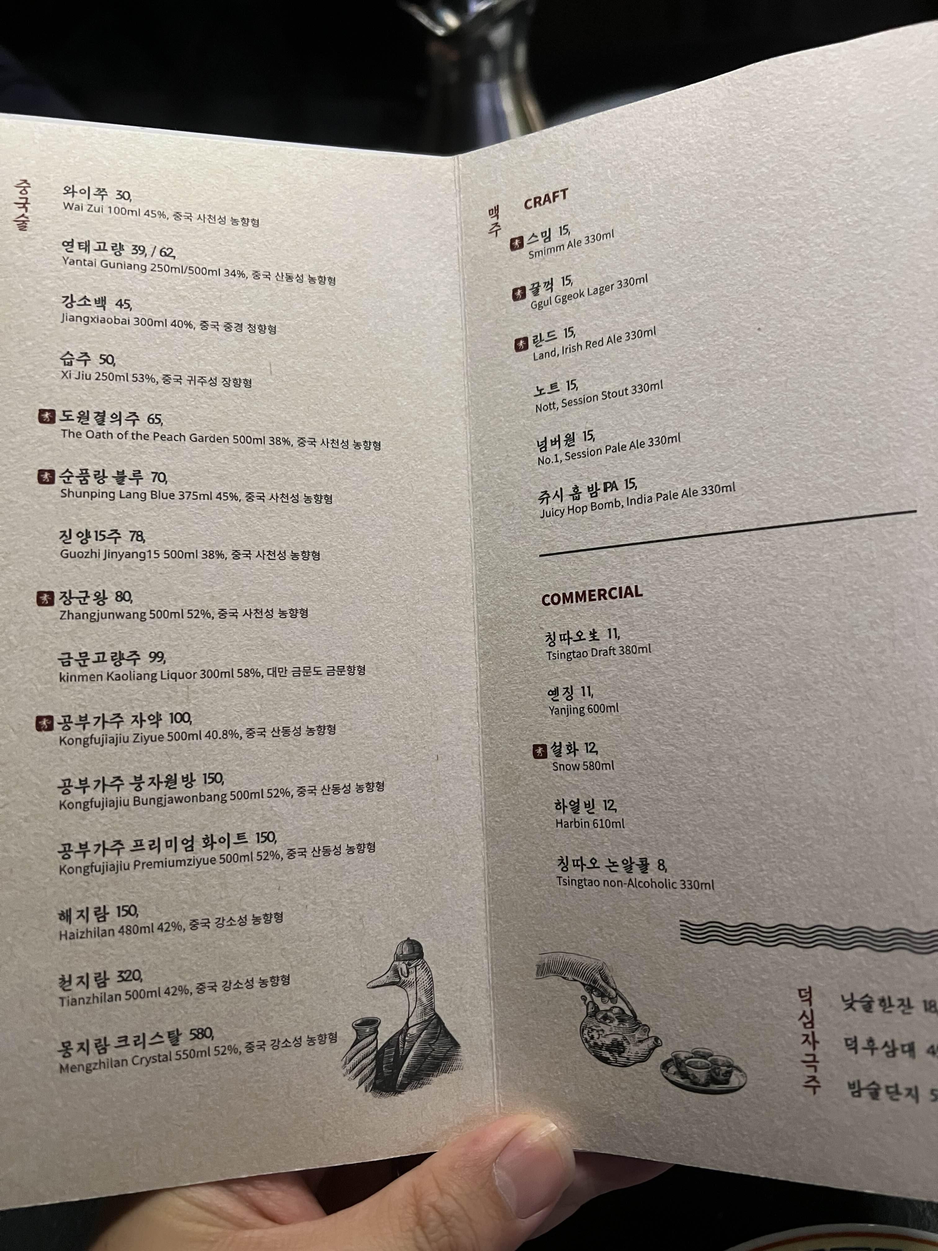 주류 메뉴판입니다. 다양한 중국술들을 다루고 있습니다. 나중에 아내와 와서 중국술과 함께 요리를 먹고 싶네요.