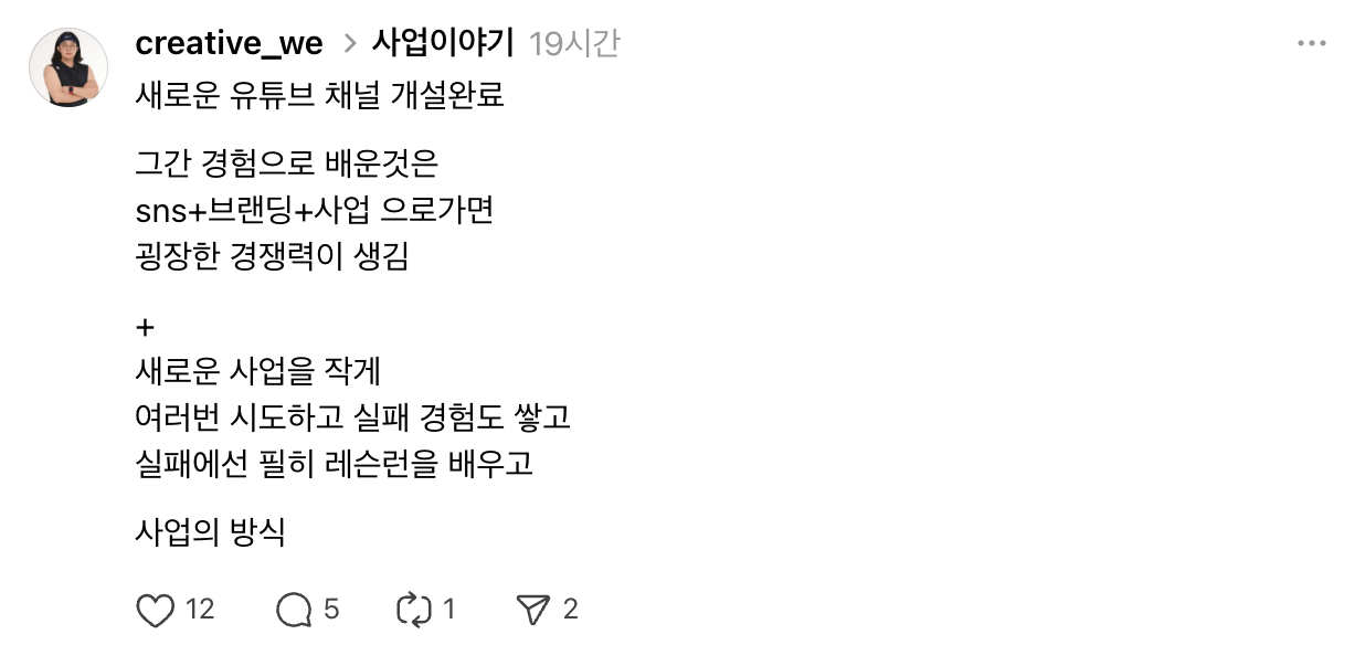 다른 SNS (유튜브, 인스타, 쓰레드 등) 열심히 콘텐츠를 쌓아가고 있는데요.