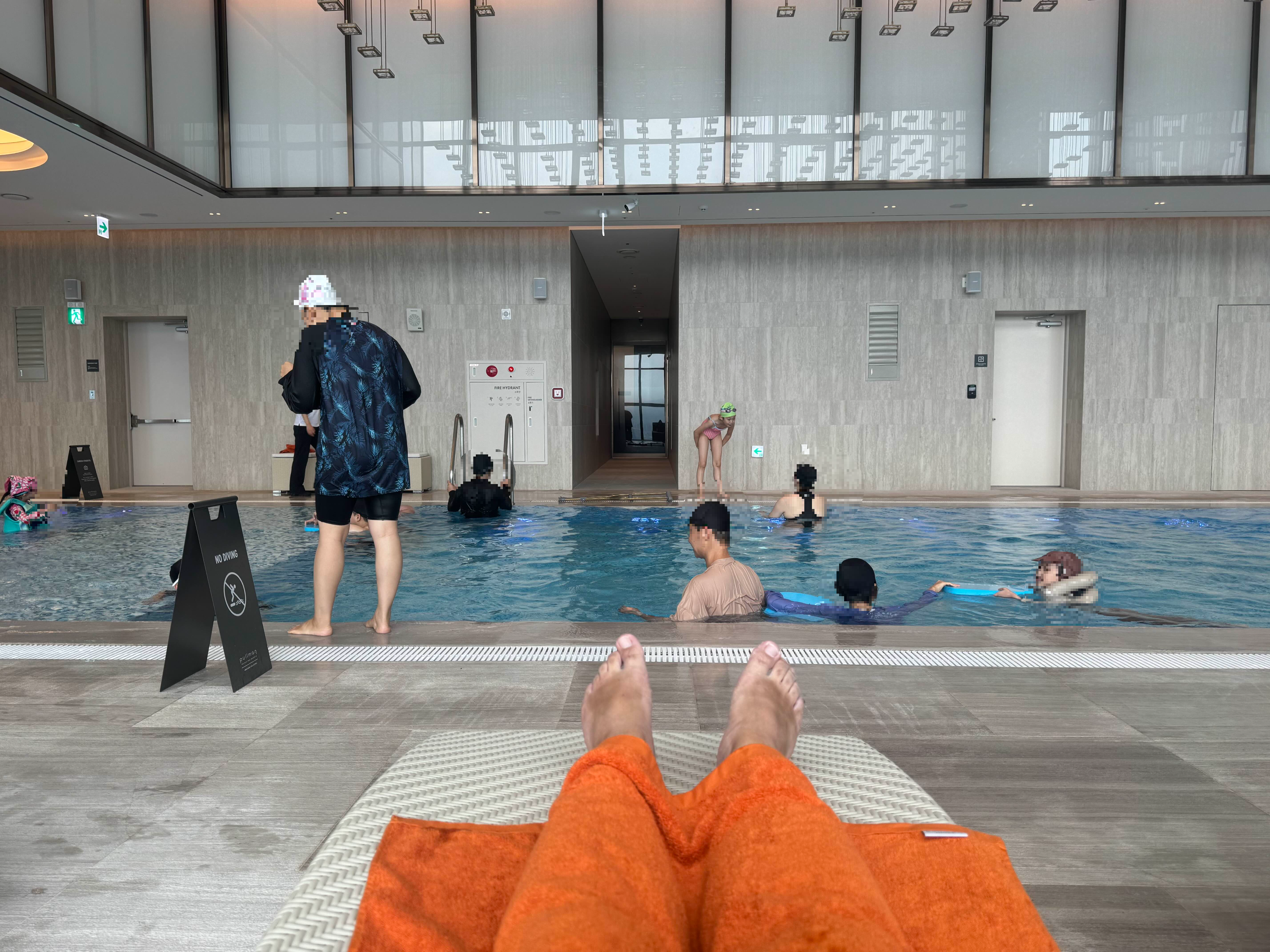 풀만 앰배서더 이스트폴 수영장의 모습입니다. 아직 그렇게나 붐비는 느낌은 아닌데, 그리고 풀 자체가 크진 않아요.